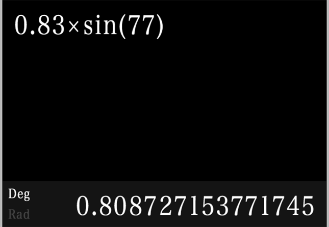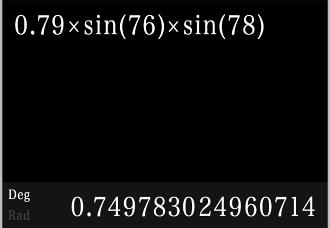 =0.79*SIN(RADIANS(76))*SIN(RADIANS(78))