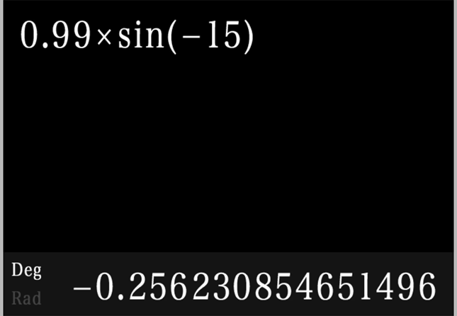 ただし、その場合は角度を「°」の単位で入力・表示できるようにするため、設定をこのように (「Deg」が白になるように) しておく必要があります。