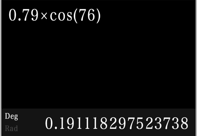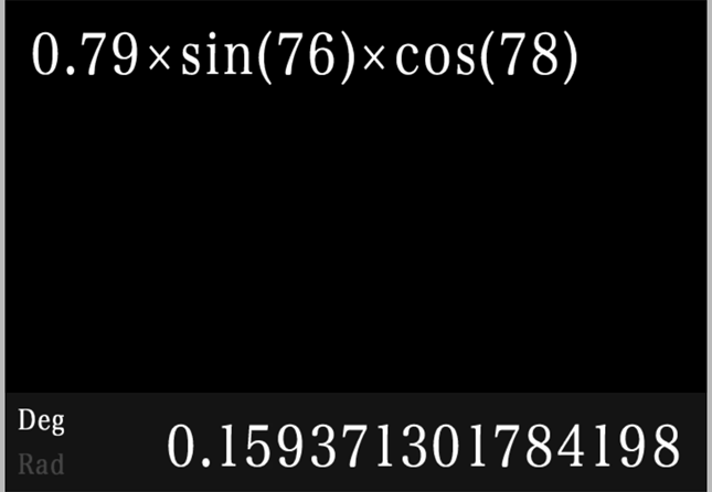 =0.79*SIN(RADIANS(76))*COS(RADIANS(78))
