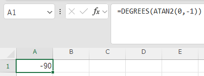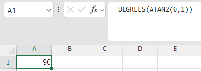 Excelでは「ATAN2(x座標, y座標)」という関数を使えばこの値が計算できます。