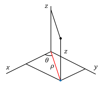 直交座標系と円柱座標系の座標は、互いに以下の関係にあります。