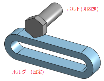 をクリックして図のように選択すると、ボルトがホルダーの穴の左側に移動する。