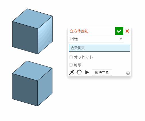 合致をかけたときの合致コネクタの円の方向に回り、青軸が回転軸になる。