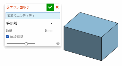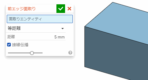 をクリックしてからエッジを選択するとそのエッジが面取りされる。