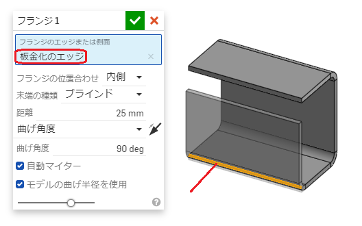 図のような板金パーツがあるときに、フランジ