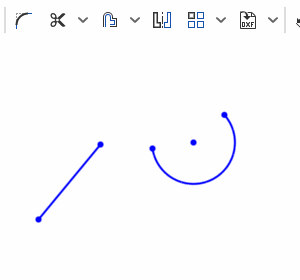 の右の∨から選択) を使うと、図のように描画済みの線を延長できる。