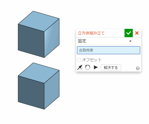 このように2つパーツを入れて片方を固定すると、もう一方はドラッグで自由に動く。