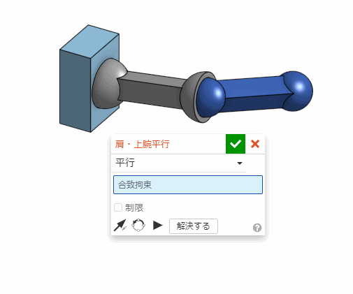 平行合致を使うと、パーツの面に平行の条件をつけられる。