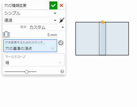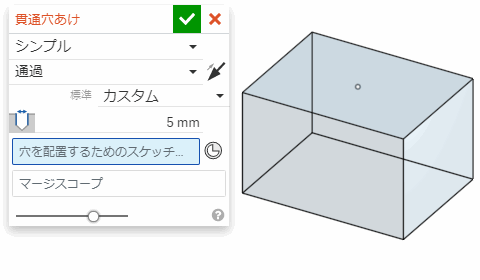 設定を変えると、貫通せずに途中で止まるようにしたり、穴の形を変えたりできる。