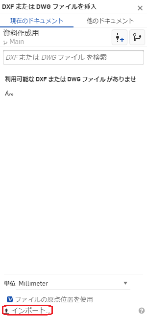 DXFファイル、DWGファイルとは、一般的なCADソフトの図面の形式。そのような外部ファイルがある場合は、スケッチに読み込むことができる