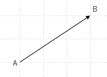 書き方1 : \(\overrightarrow{AB}\) (始点と終点の名前を並べて上に矢印)