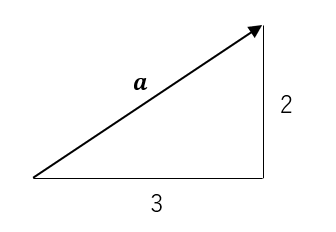 \(\sqrt{3^2+2^2}=\sqrt{13}\) のように求められるので、\(|\boldsymbol{a}|=\sqrt{13}\) となります。