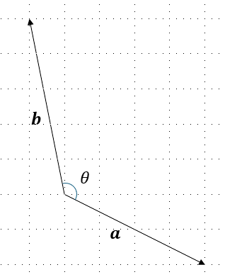 それらの始点を一致させ、2つのベクトル間の角度 \(\theta\) を含めた図を描いてください。