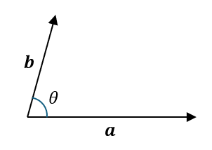 はもとのベクトルの大きさとベクトルどうしの角度 \(\theta\) で以下のように書けます (\(\theta\) は \(\boldsymbol{a}\) からみた \(\boldsymbol{b}\)