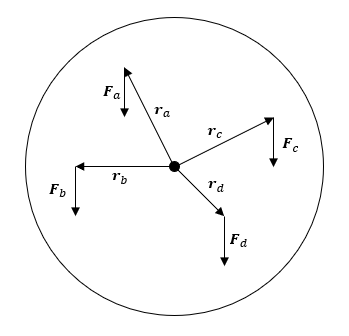 のようになり、すべて加えると0になります。つまり、この場合も全体としてつり合い、円板は回転しないことがわかります。
