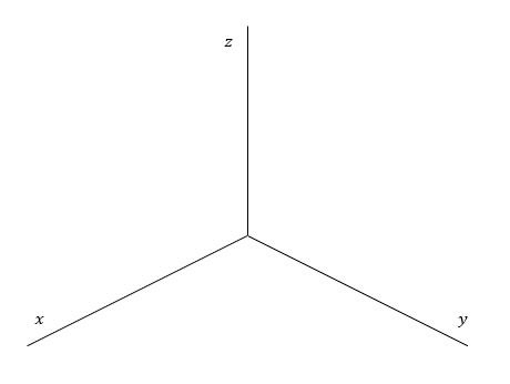 平面上のすべての点は x, y の2つの座標で表すことができますが、3次元の空間にある点を表すにはこのほかにもう一つの座標、つまりz座標が必要になります。