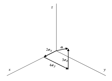 \(\boldsymbol{a} = 2\boldsymbol{e}_x+4\boldsymbol{e}_y + 3\boldsymbol{e}_z\)