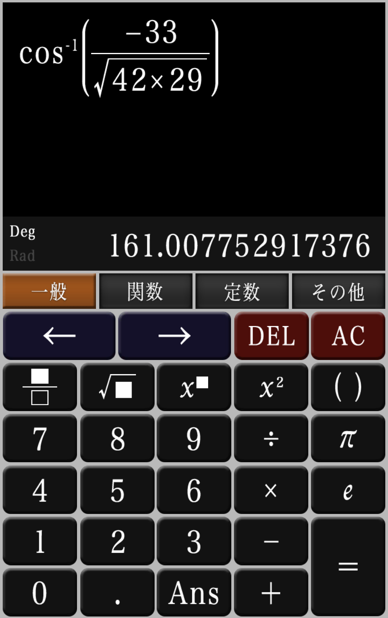 課題2の \(\boldsymbol{a}\), \(\boldsymbol{b}\) どうしの角度 \(\theta\) を求めてください。