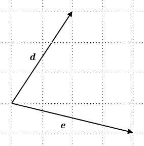 \(\boldsymbol{d}\), \(\boldsymbol{e}\) の始点を一致させた図を描いてください。