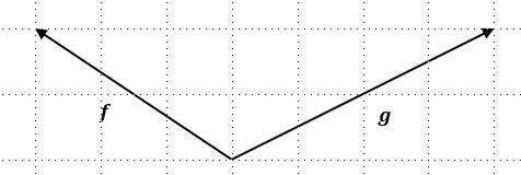 \(\boldsymbol{f}\), \(\boldsymbol{g}\) の始点を一致させた図を描いてください。