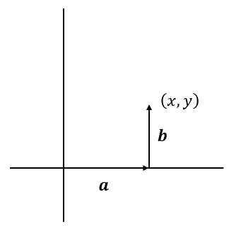 図のようなベクトル \(\boldsymbol{a}\), \(\boldsymbol{b}\) を考えると、それぞれの成分は