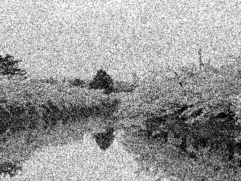ピクセルごとにランダムな閾値を設定すると、出力画像は白と黒の点がランダムにばらまかれる。