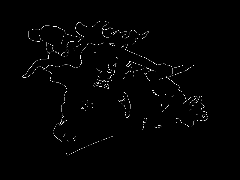 また、白線の画像の中の白い部分を黒として減色画像に重ねれば、漫画の枠線的な表現になる。