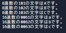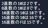 System.out.println("16進数の10は" + 0x10 + "です。");