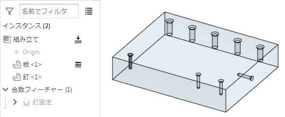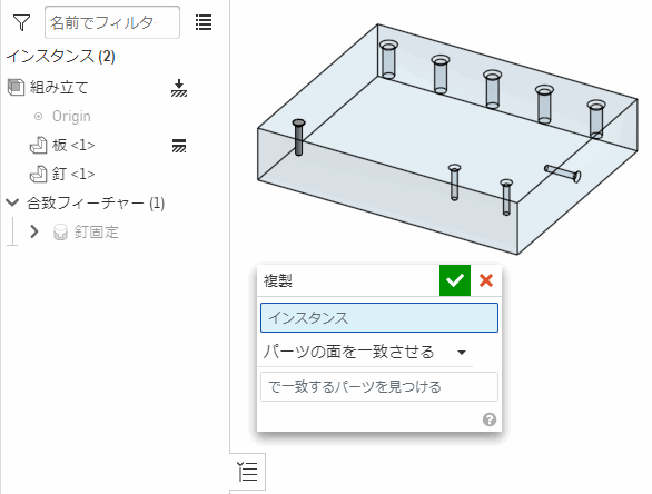 (「複製」自体はフィーチャーリストには入らない。コピーされたものに対して、コピー元と同じ合致(この場合はファスナー合致)がかかる)