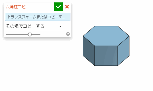 「その場でコピーする」以外の設定でも、「パーツをコピーする」にチェックを入れて実行すると、トランスフォームする前のパーツを残したまま新しいパーツが作られる。